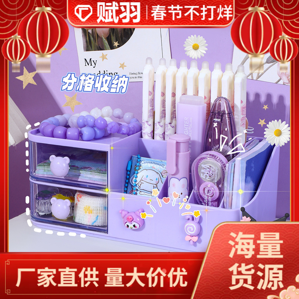 クリエイティブデスクトップ収納ケース多機能文房具整理ケース分格引き出し式筆筒シンプルデスク棚