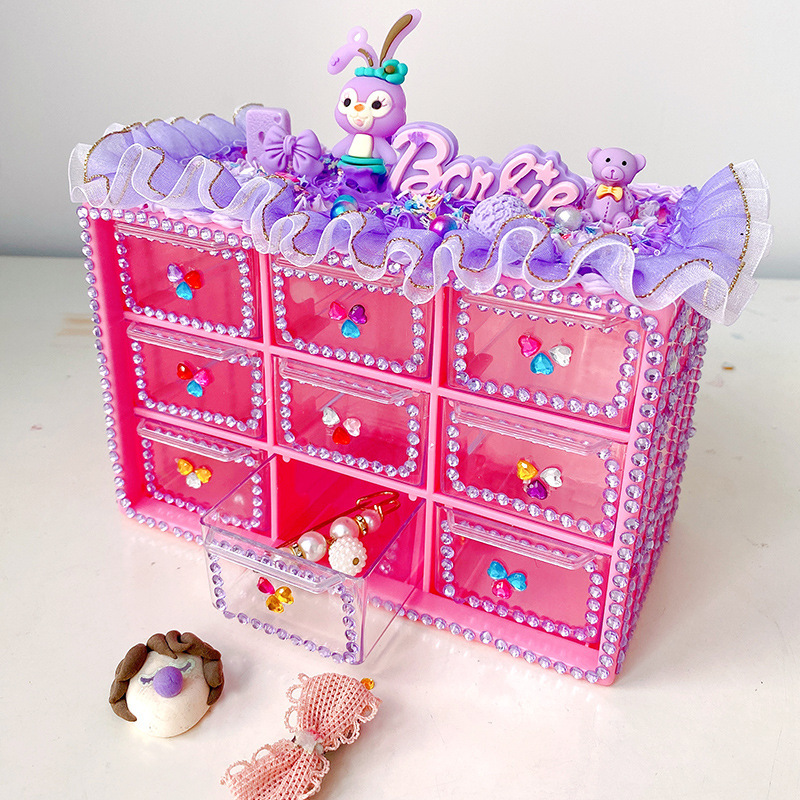創意diyクリームゴム九宮格アクセサリーケース材料学生デスクトップ手作り収納分格収納整理ケース
