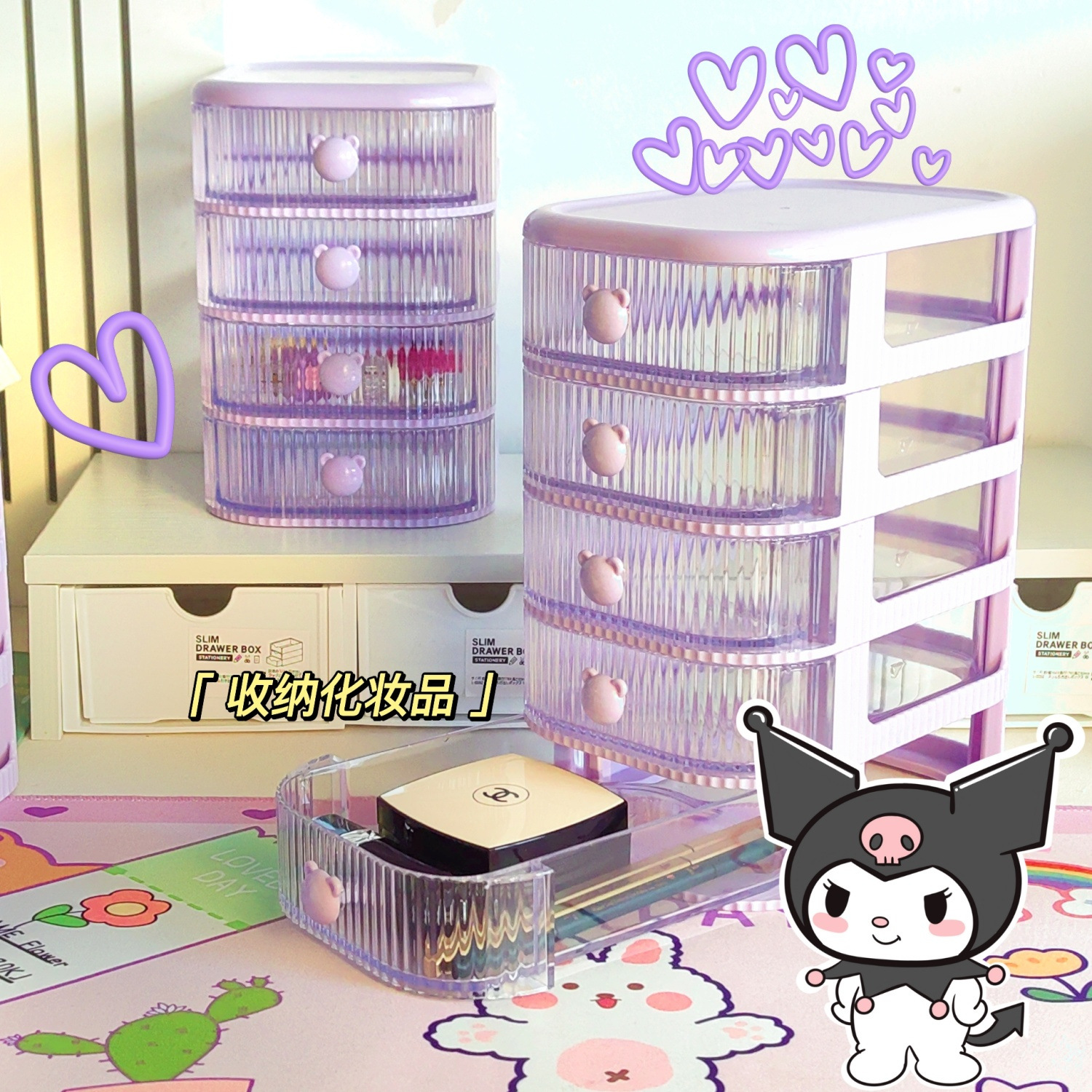 デスクトップ昇降式収納ラック インス風 移動式昇降ラック 文房具収納ラック 引き出し付き小物収納ボックス