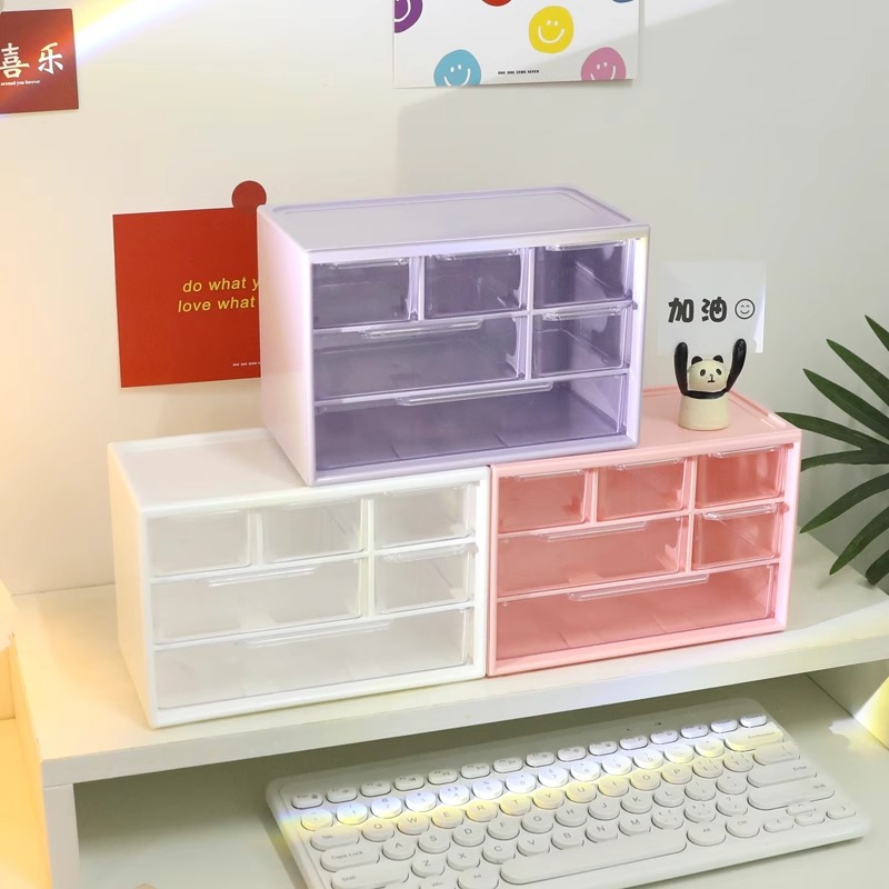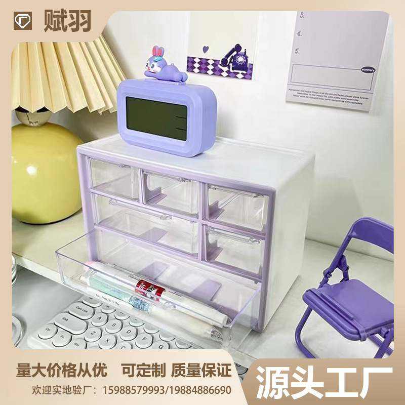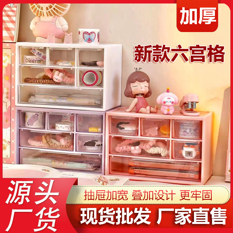 新版かわいい六宮格収納ケース引き出し本デスクトップ女性アクセサリーキャビネット小整理カードシール棚