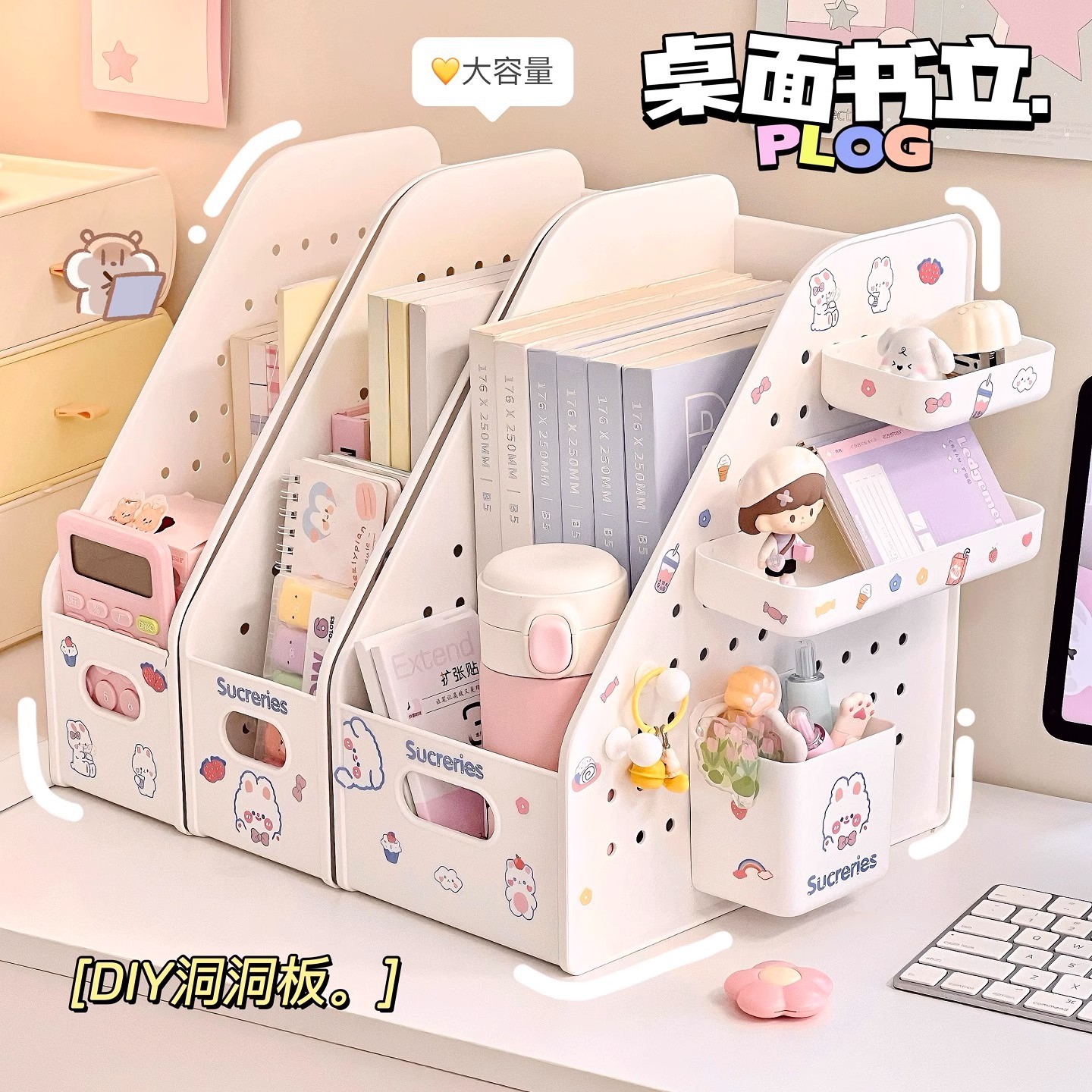 ブックスタンドデスクトップホールボード収納ボックス学生寮デスクトップ収納ラック文具ペンホルダー収納ブックオーガナイザー