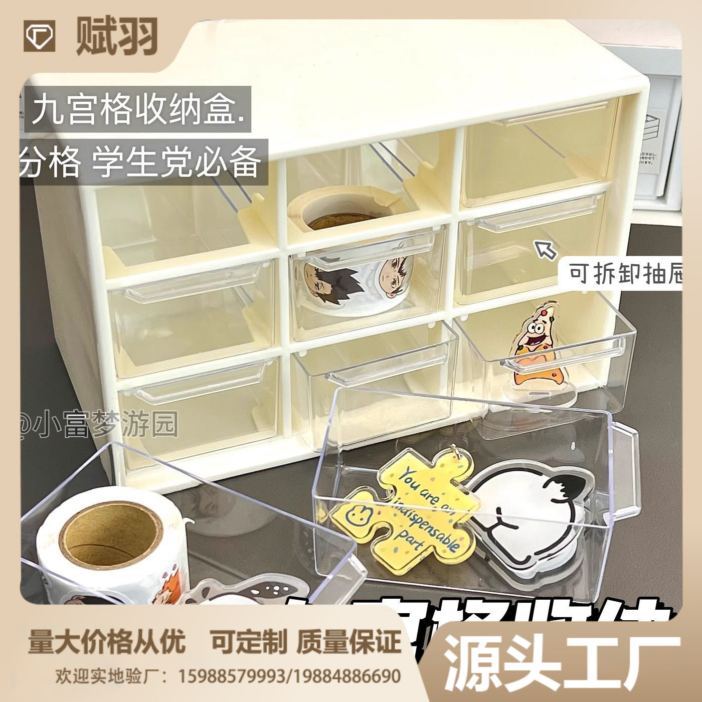Ins風少女心九宮格防塵引き出し式収納ケース寮デスクトップ手帳テープ収納整理ケース