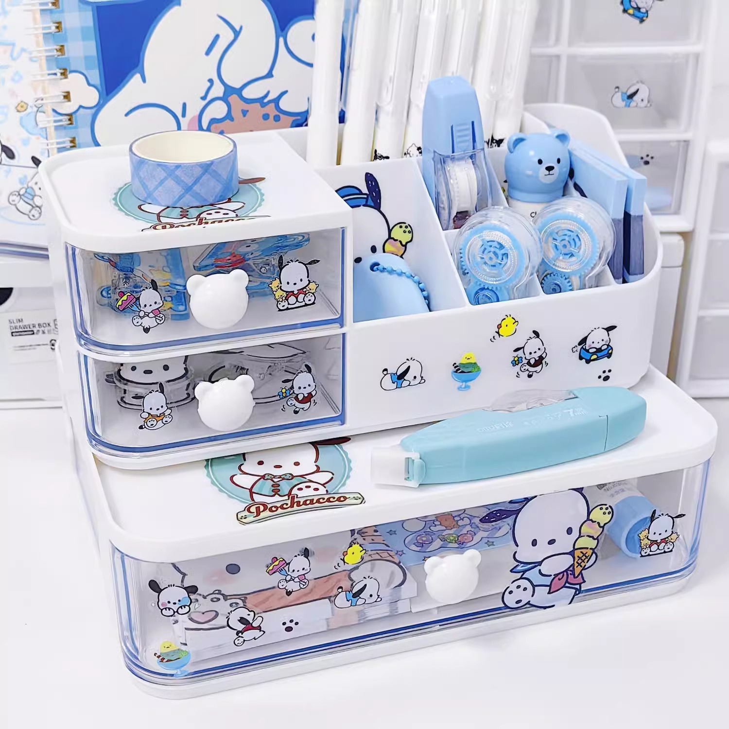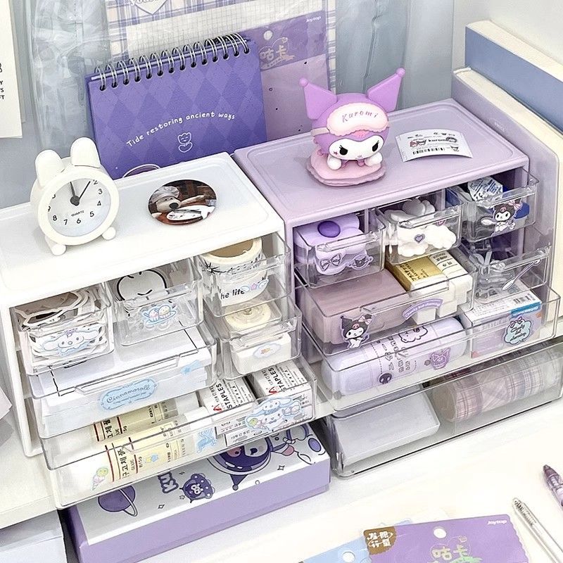 サンリオ収納ボックスサンリオデスクトップ多機能収納ボックス防塵引き出し付き収納化粧品文房具ボックス