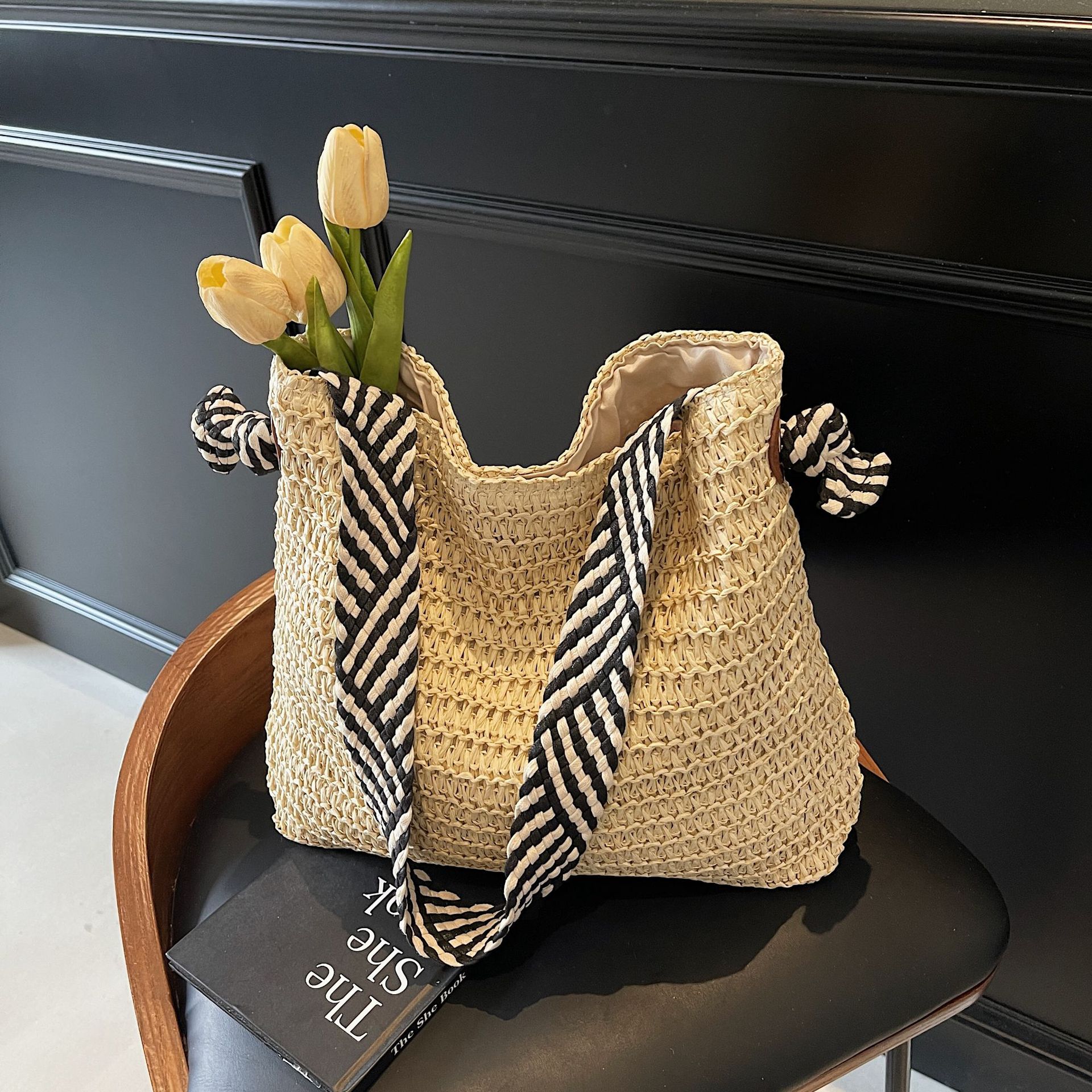 Tianmi レディースバッグ 2025 新色わら織ポータブルバケットバッグカジュアルビーチリゾートスタイルショルダークロスボディバッグ