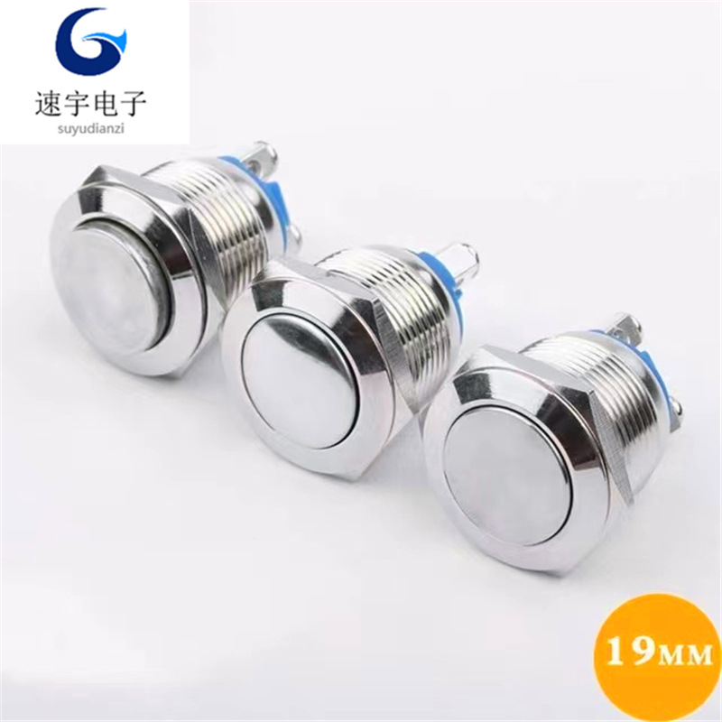 19mm金属押しボタンスイッチセルフロック両足ねじ足防水フラットヘッド金属押しボタンスイッチ