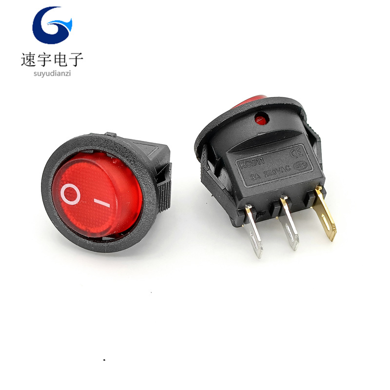 円形船型スイッチkcd11上元下方3脚赤色ランプ穴付き15mmリフト電源スイッチ
