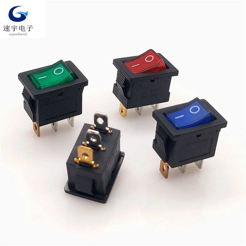 船型スイッチKCD1-103三脚二段ランプ付き15*21mm全銅脚反り板電源スイッチ