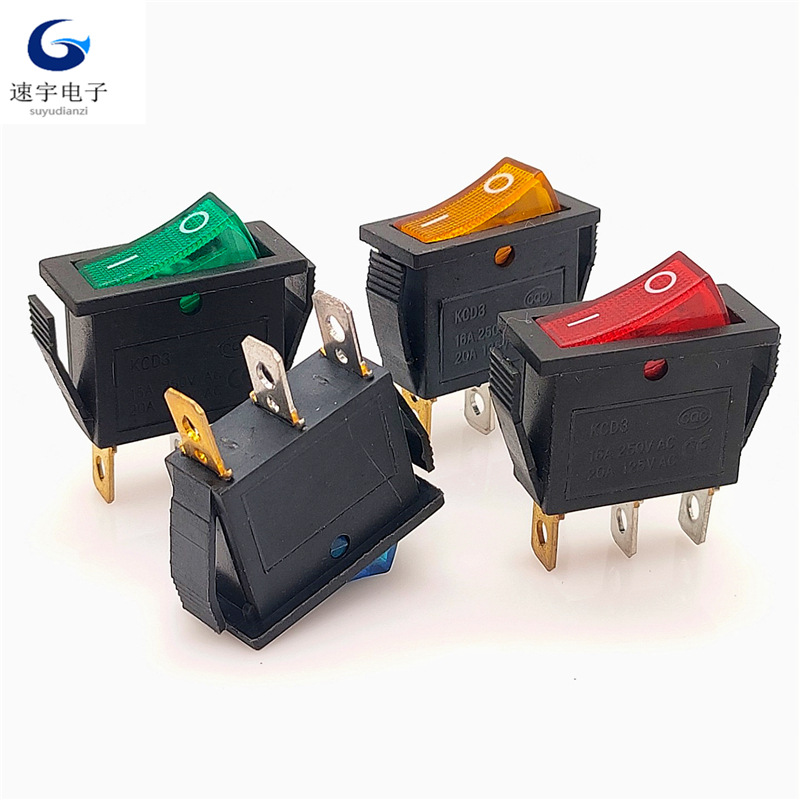 船型スイッチkcd3三脚二段ランプ付き14*31mmリフト電源スイッチ電熱鍋スイッチ