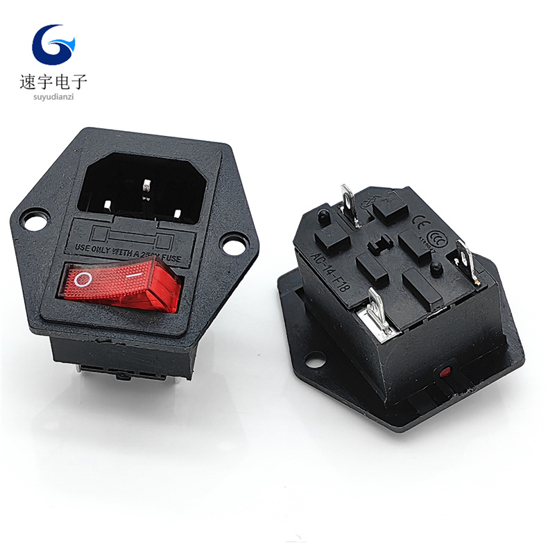 スリーインワン電源コンセントAC-01カード式スイッチ付きヒューズ付き品字型ac電源コンセント