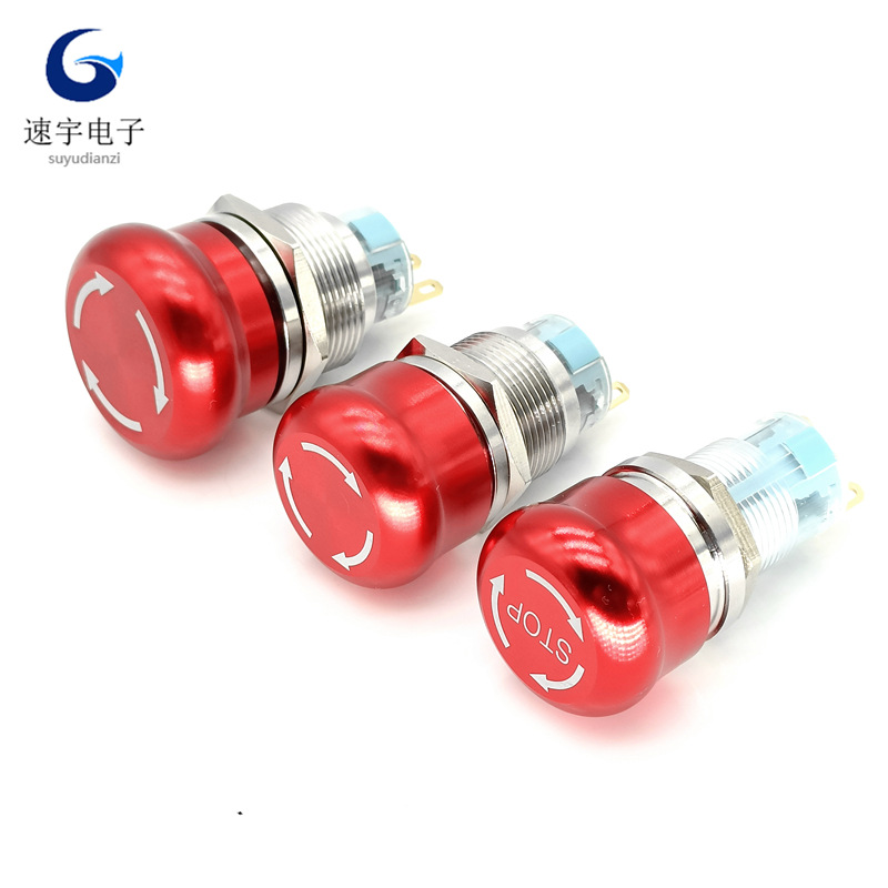 16/19/22mm防水金属非常停止ボタンスイッチ3脚キノコヘッド非常停止ボタンスイッチ