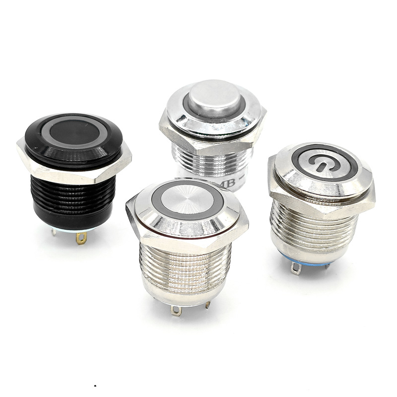 ショートタイプ16mm金属押しボタンスイッチ4脚ランプ付きハイヘッド/フラットヘッドロックなし自己防水押しボタンスイッチ