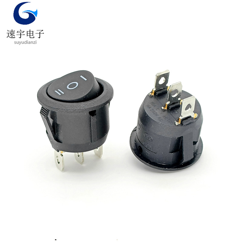 在庫あり 丸型ボートスイッチ KCD1 黒色 3ピン 3段階 切替 20MM開口部 ロッカースイッチ