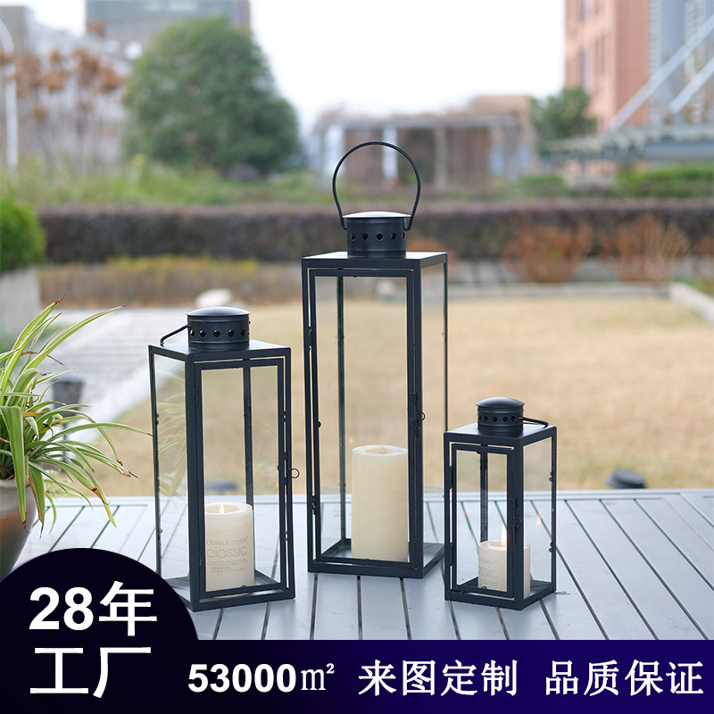 スポットヨーロッパのシンプルな黒の燭台アマゾン卸売屋外ホテルの装飾大型ポータブル鉄風ランプ