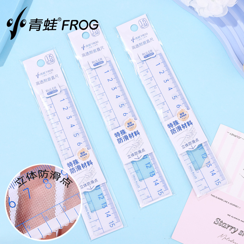 リトルカエル滑り止め定規 15 20 センチメートル定規波線小中学生学習測定立体滑り止め定規