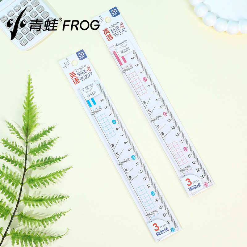 カエル20cm英語スクラッチ定規透明クリアデジタル定規波線定規測定スケール付き