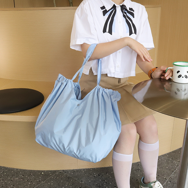 純色大容量折り畳みレジ袋環境保護携帯スーパーショッピングバッグins風買い物バッグシングルバッグ
