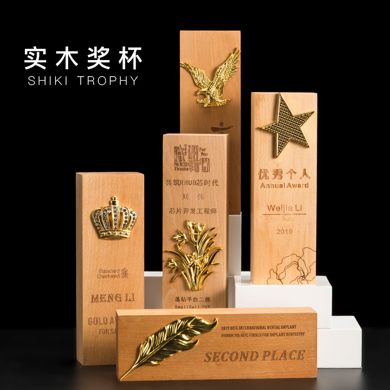 メーカー直販創意木製トロフィーオーダーメイド彫刻優秀社員祝日試合木製置物賞品プレゼント