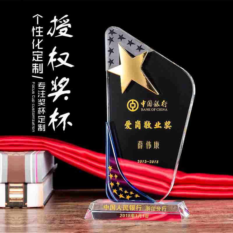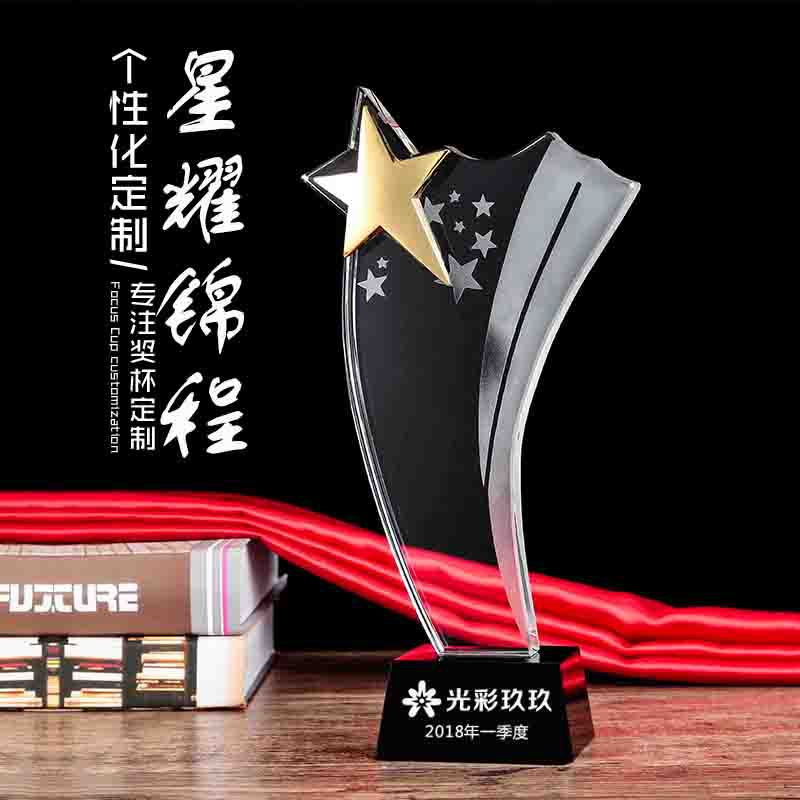 メーカー直販金属五星水晶トロフィーカスタム彫刻企業年末パーティー授賞優秀社員置物