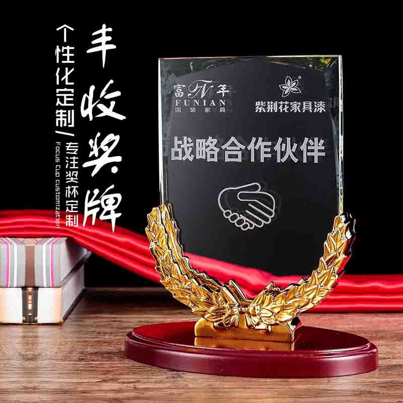 メーカー直販木ベース麦穂水晶メダルカスタム企業合作授権カード優秀社員栄誉置物