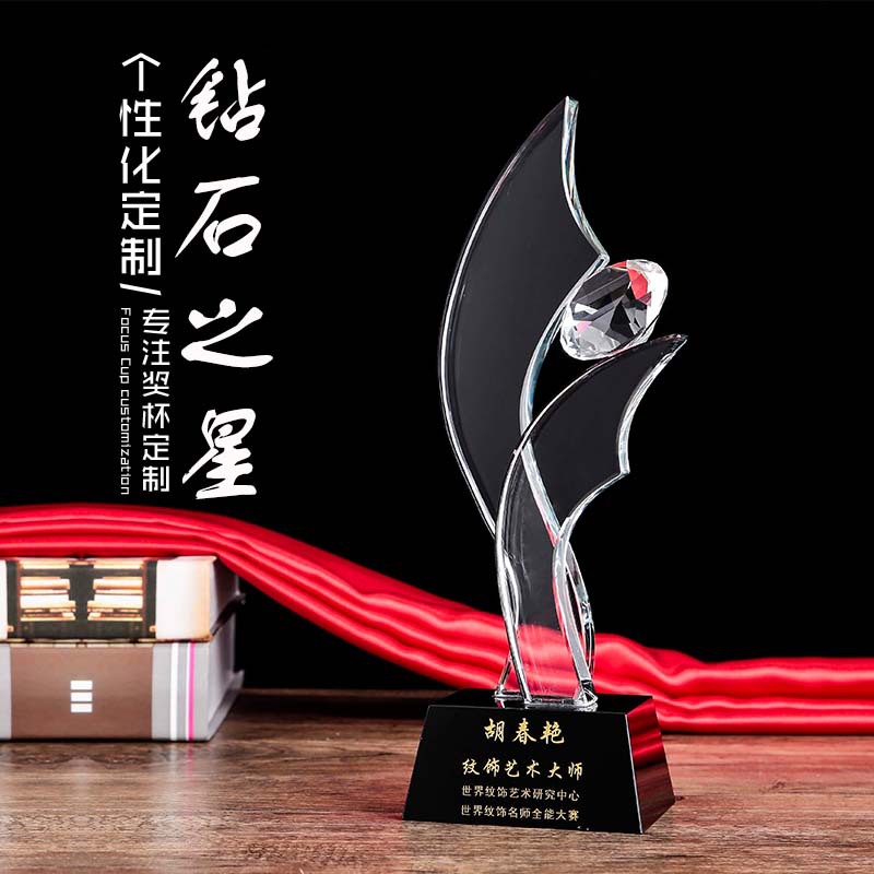 メーカー直販新型ダイヤモンド水晶トロフィーカスタム優秀社員表彰記念祝日試合記念置物