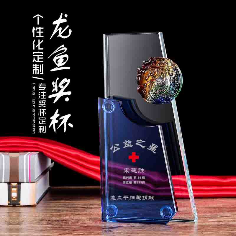 メーカー直販創意龍魚水晶トロフィーオーダーメイド置物彫刻祝日試合記念品従業員授権札