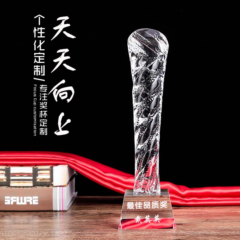 メーカー直販多色斜面酸洗ねじり柱水晶トロフィー彫刻オーダー優秀社員ビジネス式典賞品