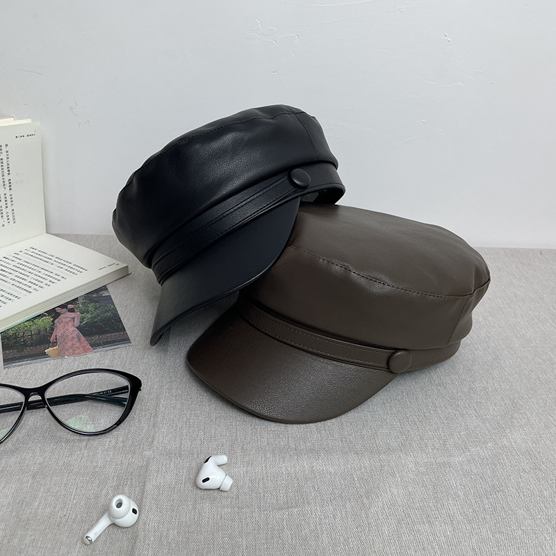 軍帽の新型春秋八角帽子の女性高級感英倫復古皮質ベレー帽文芸百合報童帽子