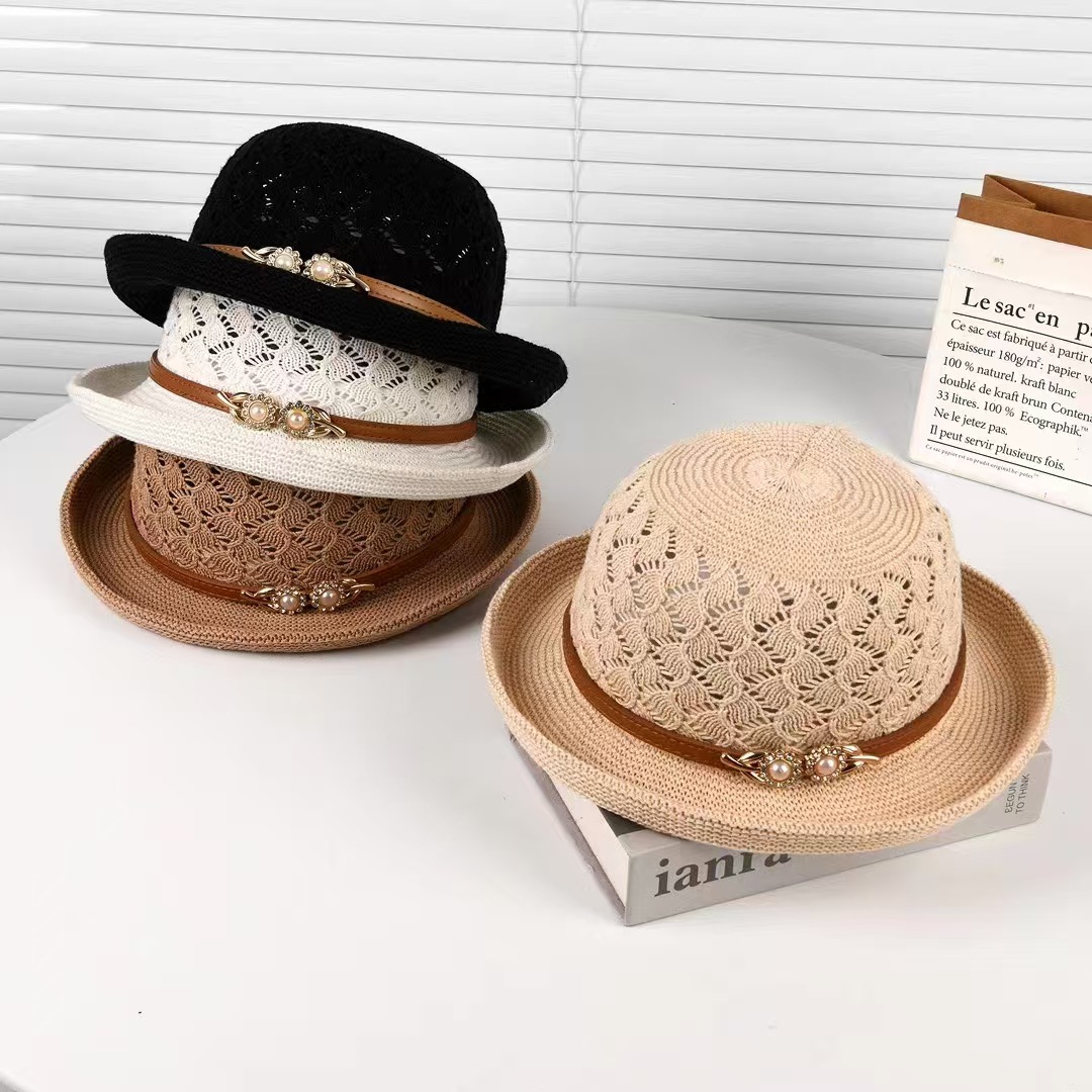 帽子国内販売フランスの新しいファッション中空薄型カーリングシルクハット韓国スタイルの屋外サンシェード小顔文学帽子