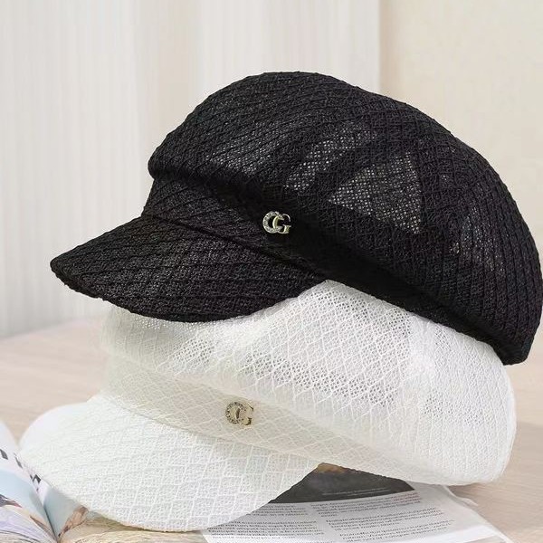 2025日韓系通気透かし彫り黒八角帽子女春夏百合純色シンプルアルファベット子供帽子