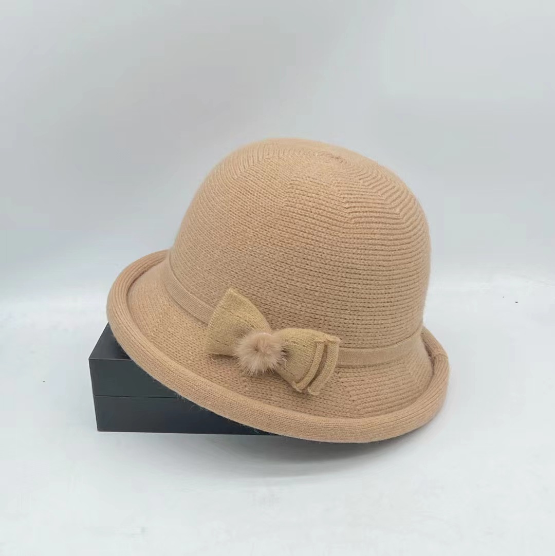 帽子の新型秋冬の韓国の毛糸の帽子の小さい大衆の百合の漁師の帽子の蝶結びのニットの礼儀正しいお母さんのファッション