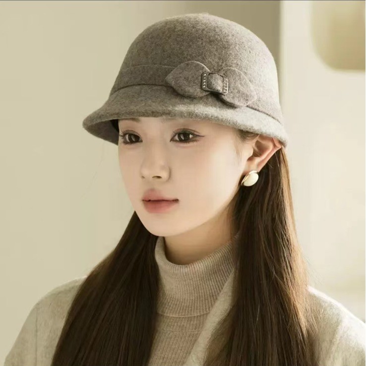 2024新型の甘い帽子女性秋冬ニット漁師帽日系洋気ファッション顔を隠す小さなバケツ帽