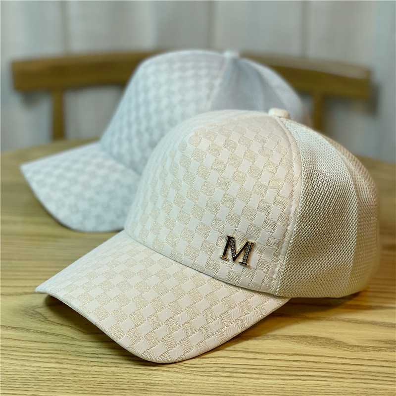 韓国版の帽子の女性の春の夏のネットの帽子のカジュアルな格子の日焼け止めの日よけのアヒルの舌の帽子のmの標識の百合のネットの赤い野球の帽子