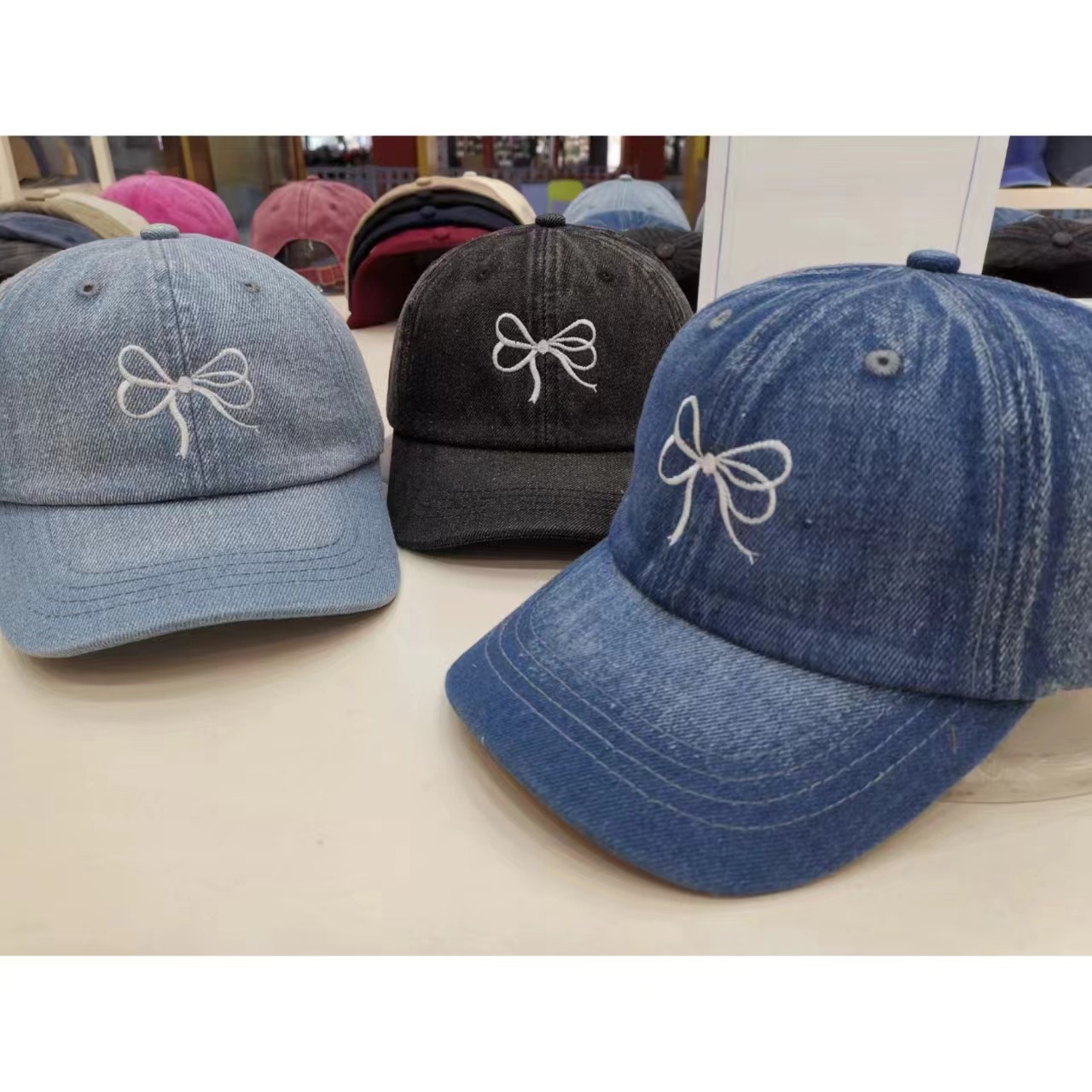 韓国版ins野球帽2024年新型カウボーイ愛蝶結び刺繍甘い水洗い鴨舌帽春秋