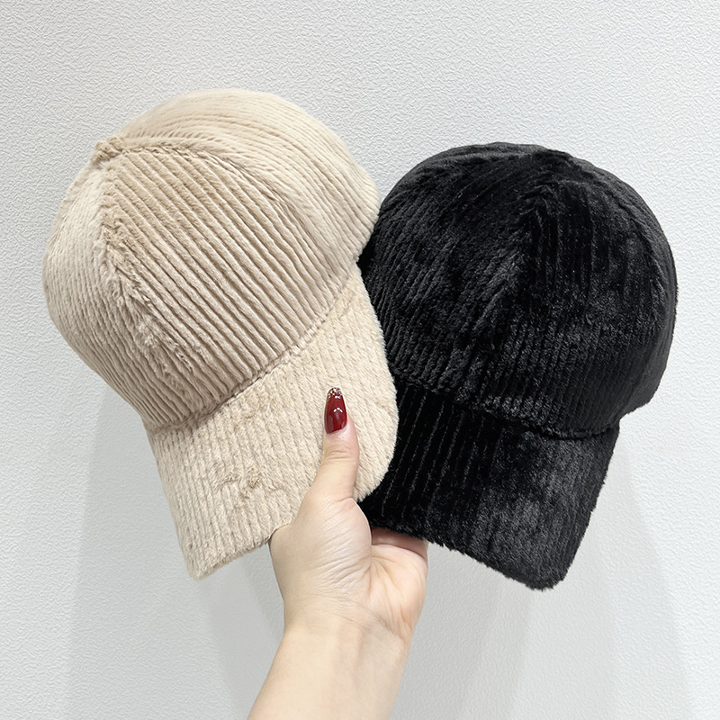 新型韓国版insパイル縦縞鴨舌帽女性秋冬保温防寒百合軒野球帽男