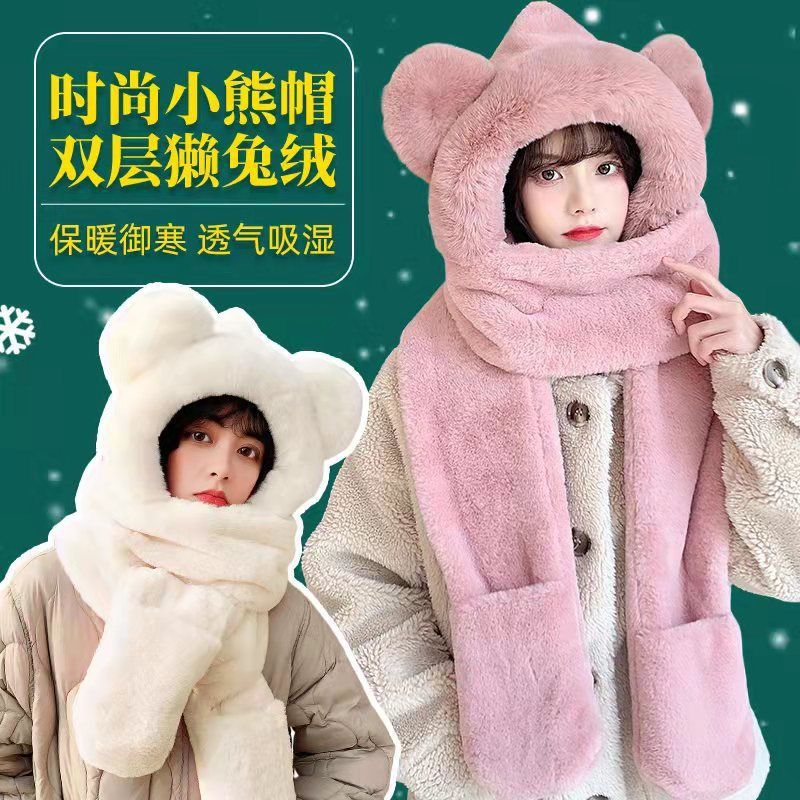 帽子の女性の秋冬の熊は厚くて保温します。