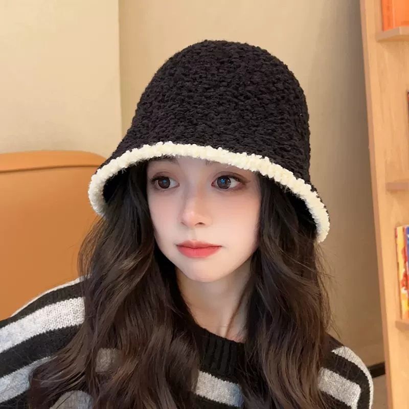 黒のぬいぐるみ漁師帽女2023新秋冬百合小香風顕顔小すっぴんニットバケツ