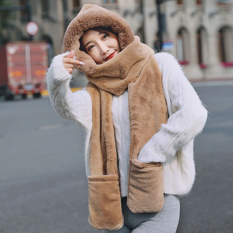 2022韓国版の純色はウサギの毛の帽子のマフラーをまねます。