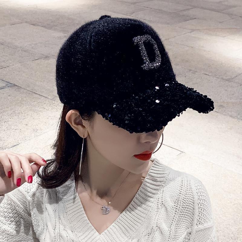 ファッションの韓国版の帽子の女性の秋冬の野球の帽子のカジュアルな街頭のミンクの毛の女性のアヒルの舌の帽子のドリルの女性の帽子