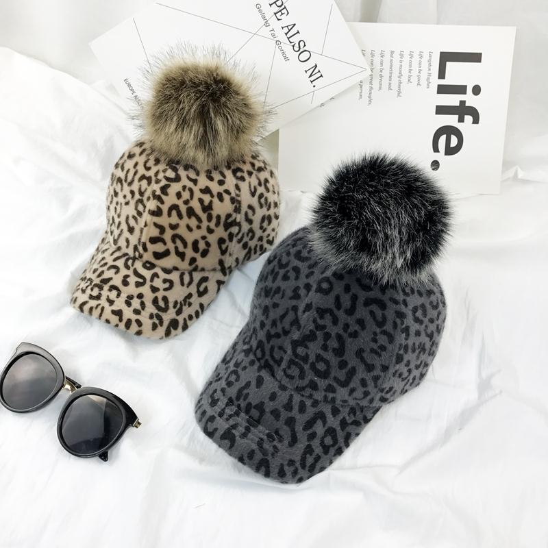 冬の親子帽子ファッション豹柄野球帽子母と娘の屋外で厚い保温アヒルの舌帽子毛玉女帽子