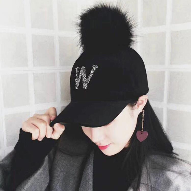 帽子の女性秋冬毛玉韓国版ファッション文芸百合鴨舌帽子ぬいぐるみファッション保温野球帽日よけ帽子