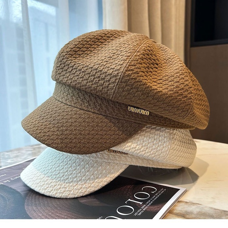 新しい日本の純色の八角の帽子の女性の英倫の復古のファッションは顔の小さいベレーの帽子を現します。