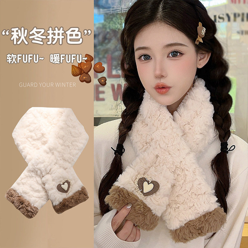 かわいい色のエンボス金の愛の柔らかい妹のマフラーの女性の秋冬のinsの少女の日の韓国版の学生は集まって首を囲みます。