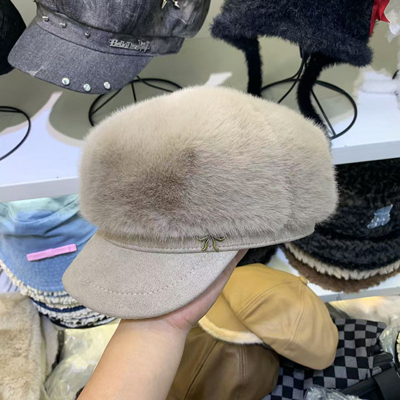 秋冬の金属の蝶結びはミンクの毛の八角の帽子をまねます。