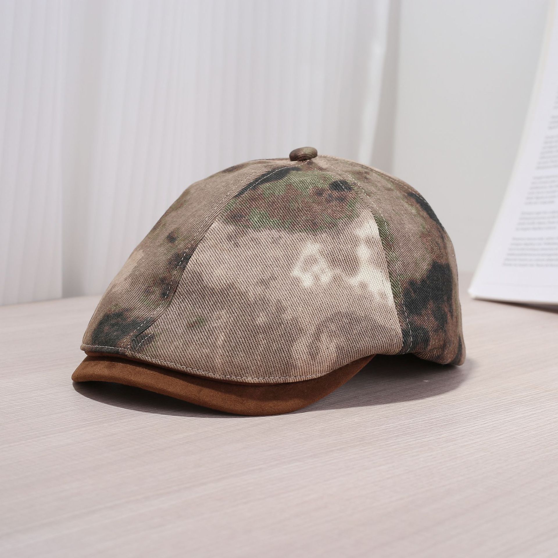 2025 秋冬中国風芯ストライプ八角形帽子女性の日本と韓国スタイルの大きな頭囲レトロ英国スタイルキャスケット帽子