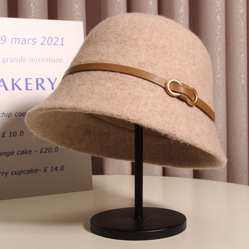 日本のレトロなベルトのボタンのウールの漁師の帽子の女性の秋冬は折り畳みができます。