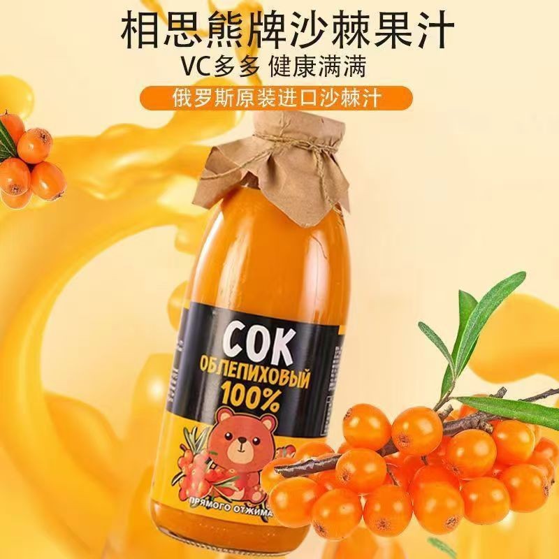 ロシア輸入アカシア熊ブランドガラス瓶沙棘原パルプジュース750ミリリットル/本