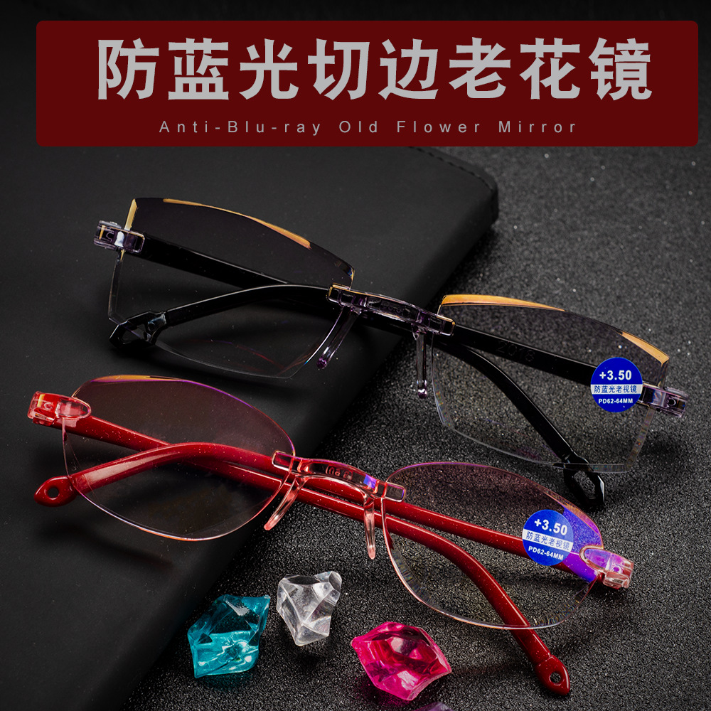2019新型フレームレスエッジ一体フレームブルーライト防止紫外線防止老眼鏡男女2種類