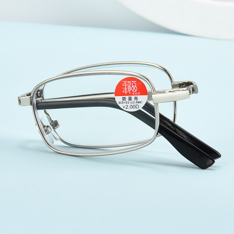 新型高級全枠折り畳みステンレスフレーム防ブルーライト樹脂片牛皮箱老眼鏡3005項