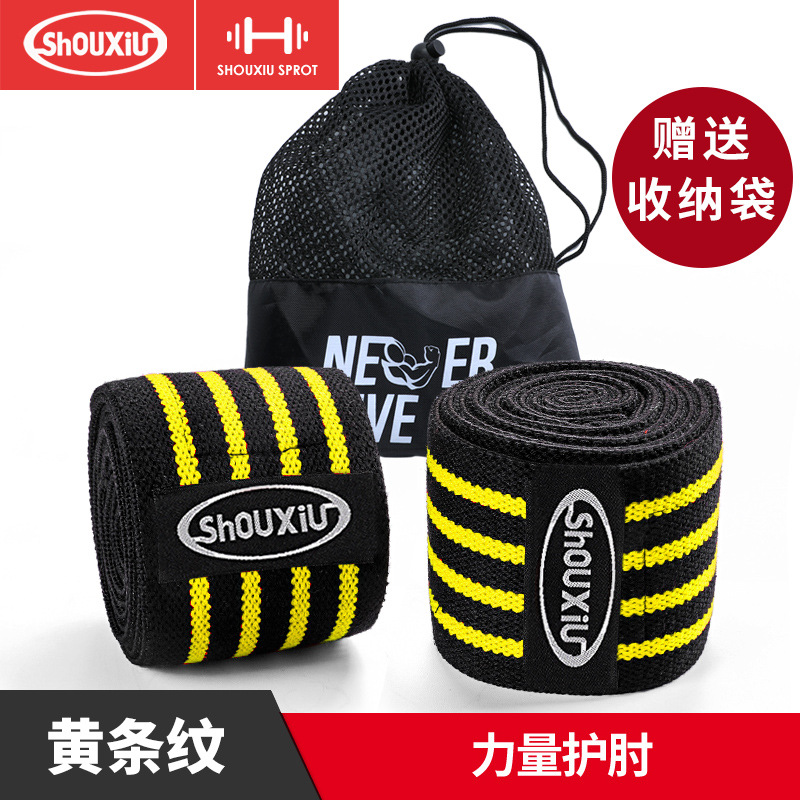 肘の力を挙げてフィットネスをします。肘の包帯の手袋の保護具の重量挙げ運動のトレーニングをします。