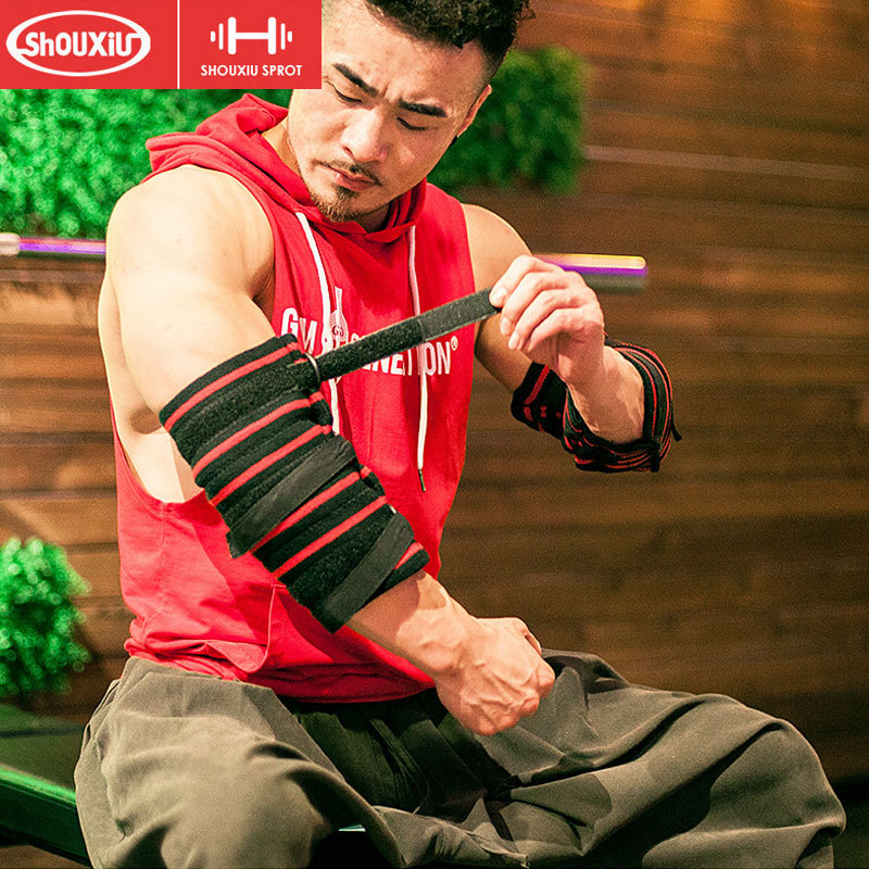 フィットネスの包帯の腕の健康と美しさは加圧ベルトの力を巻いて重量挙げをします。